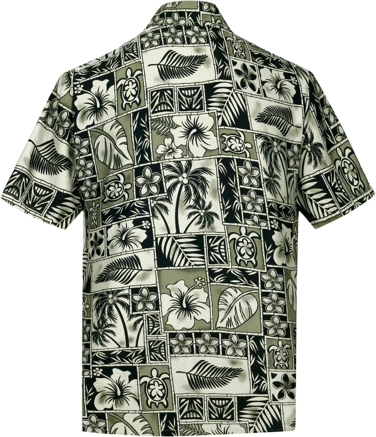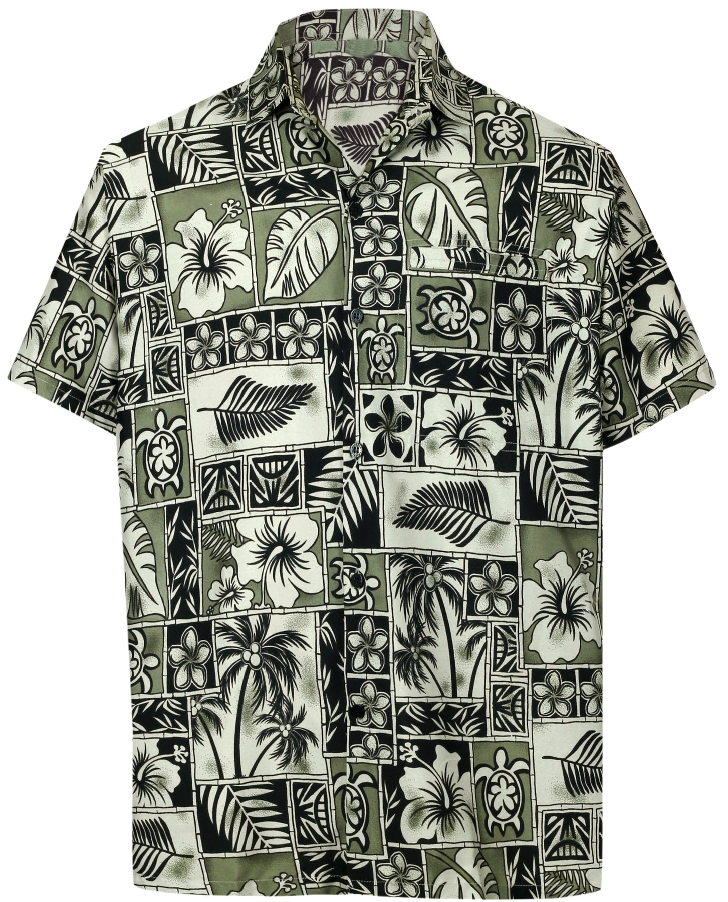 HAPPY BAY Men's Beach Hawaiian Shirts Olive,Aloha P00049