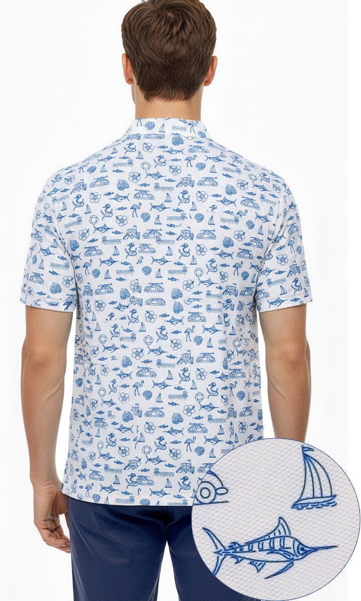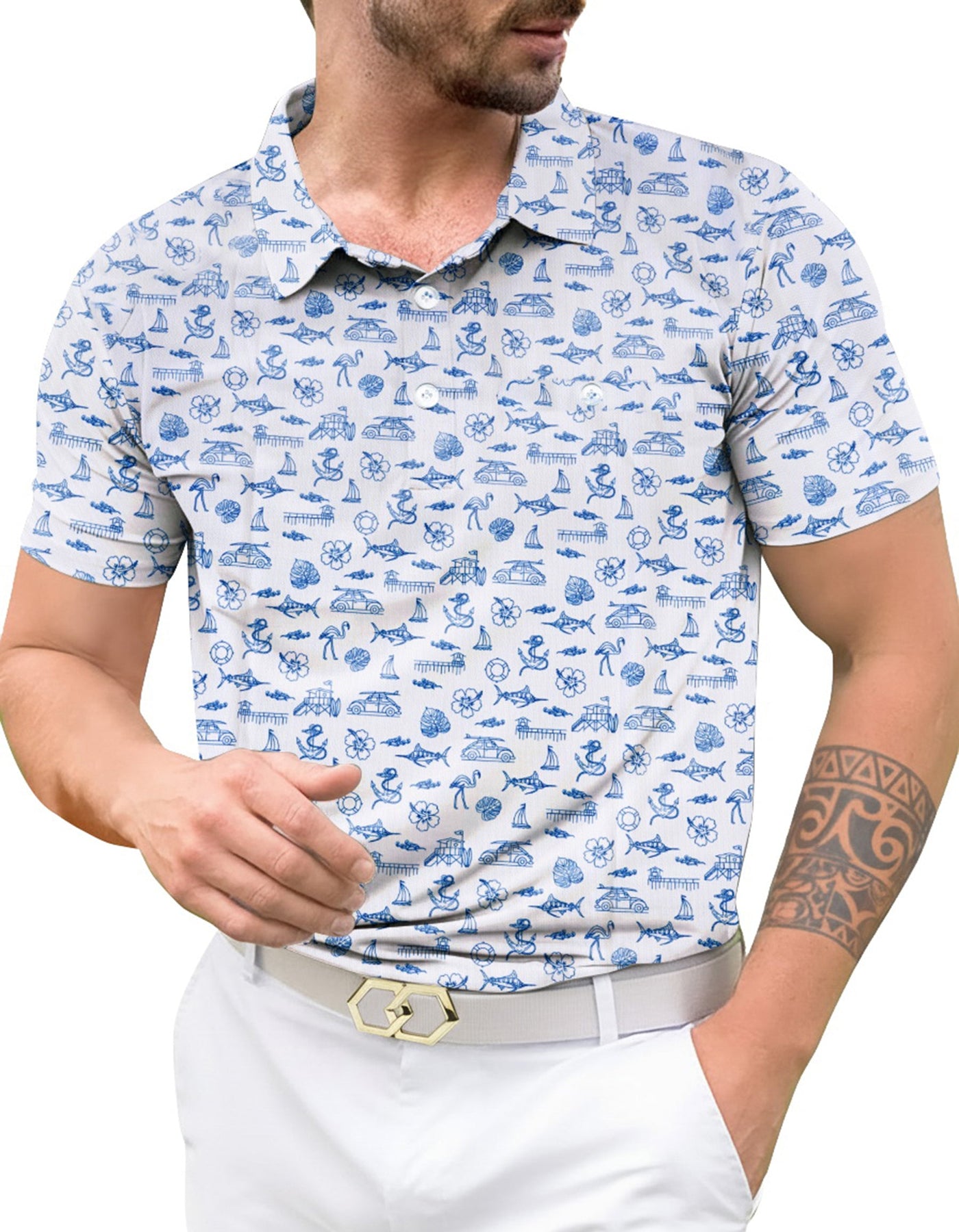 HAPPY BAY Boat Blue Mens Golf Polo Shirt P10336