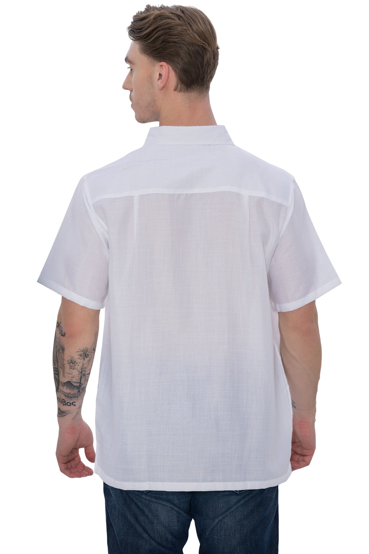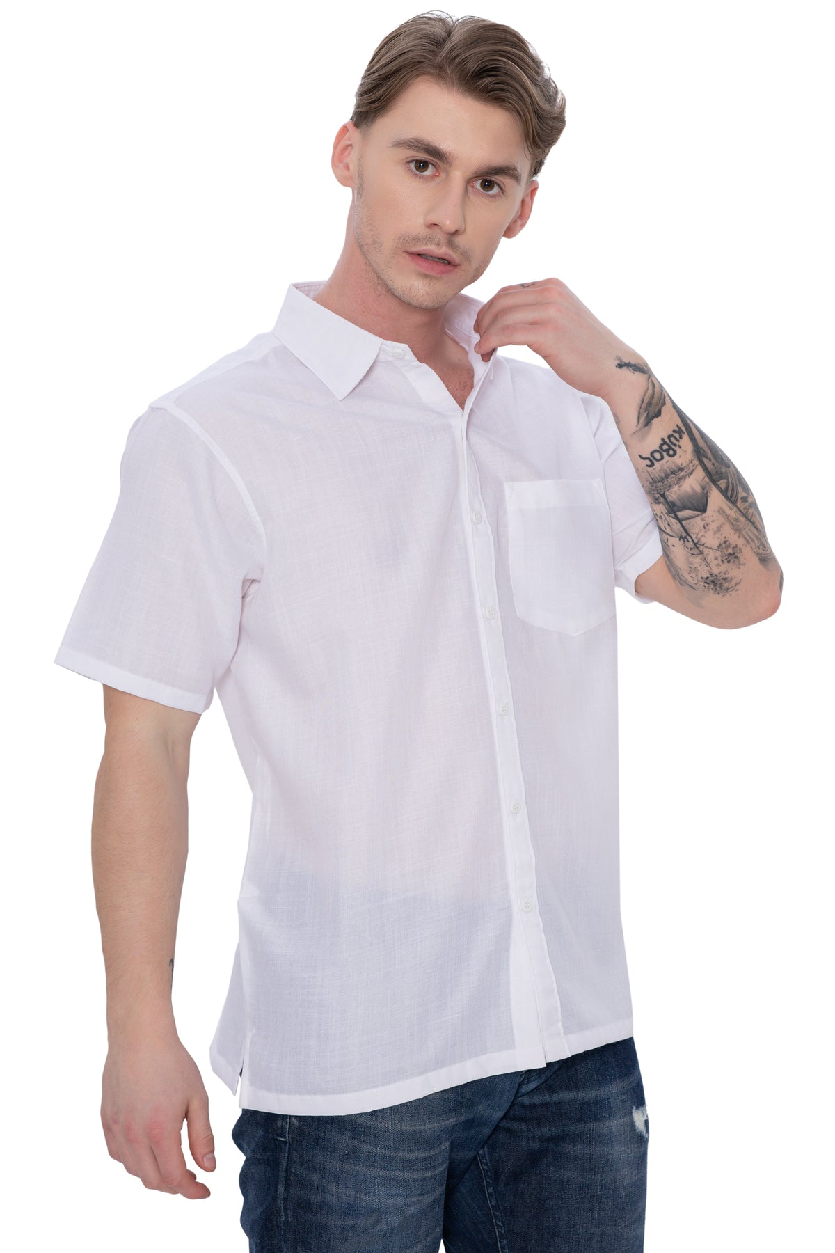 HAPPY BAY Mens Hawaiian Shirts Plain White P00487