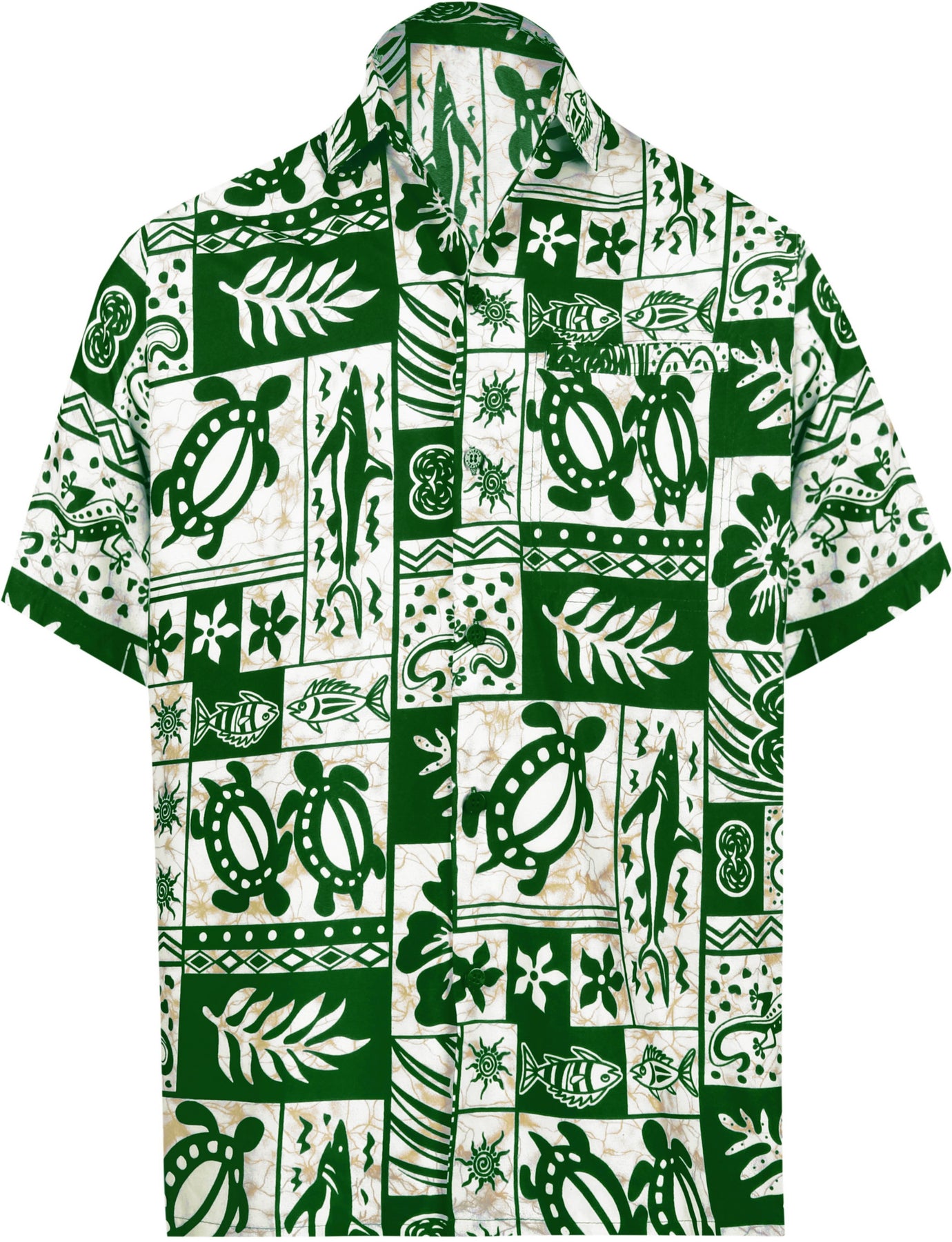 HAPPY BAY Men's Aloha Hawaiian Shirts Green,Turtle P00015
