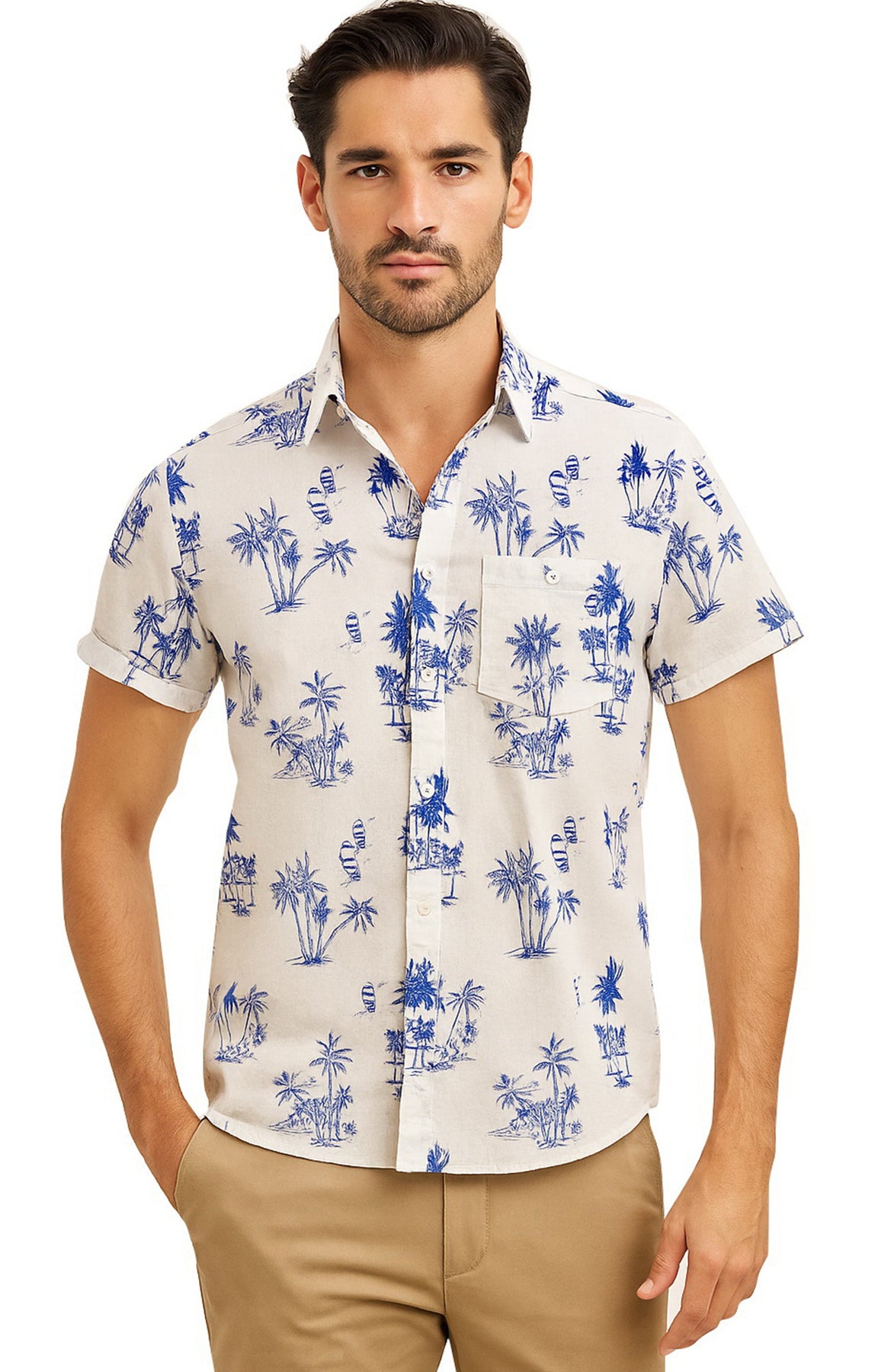HAPPY BAY Mens Hawaiian Shirts Large Beach White P00439