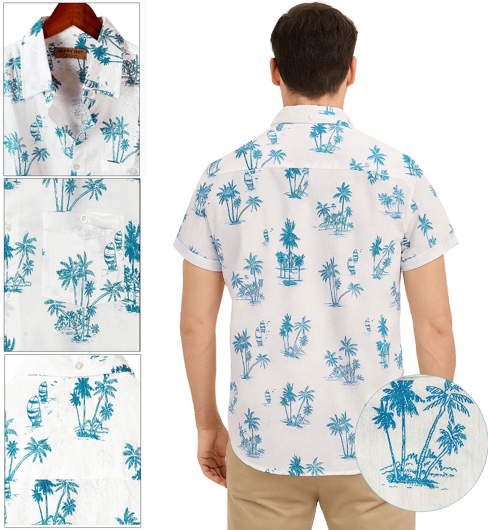 HAPPY BAY Mens Hawaiian Shirts T_Blue Palm Tree P00440