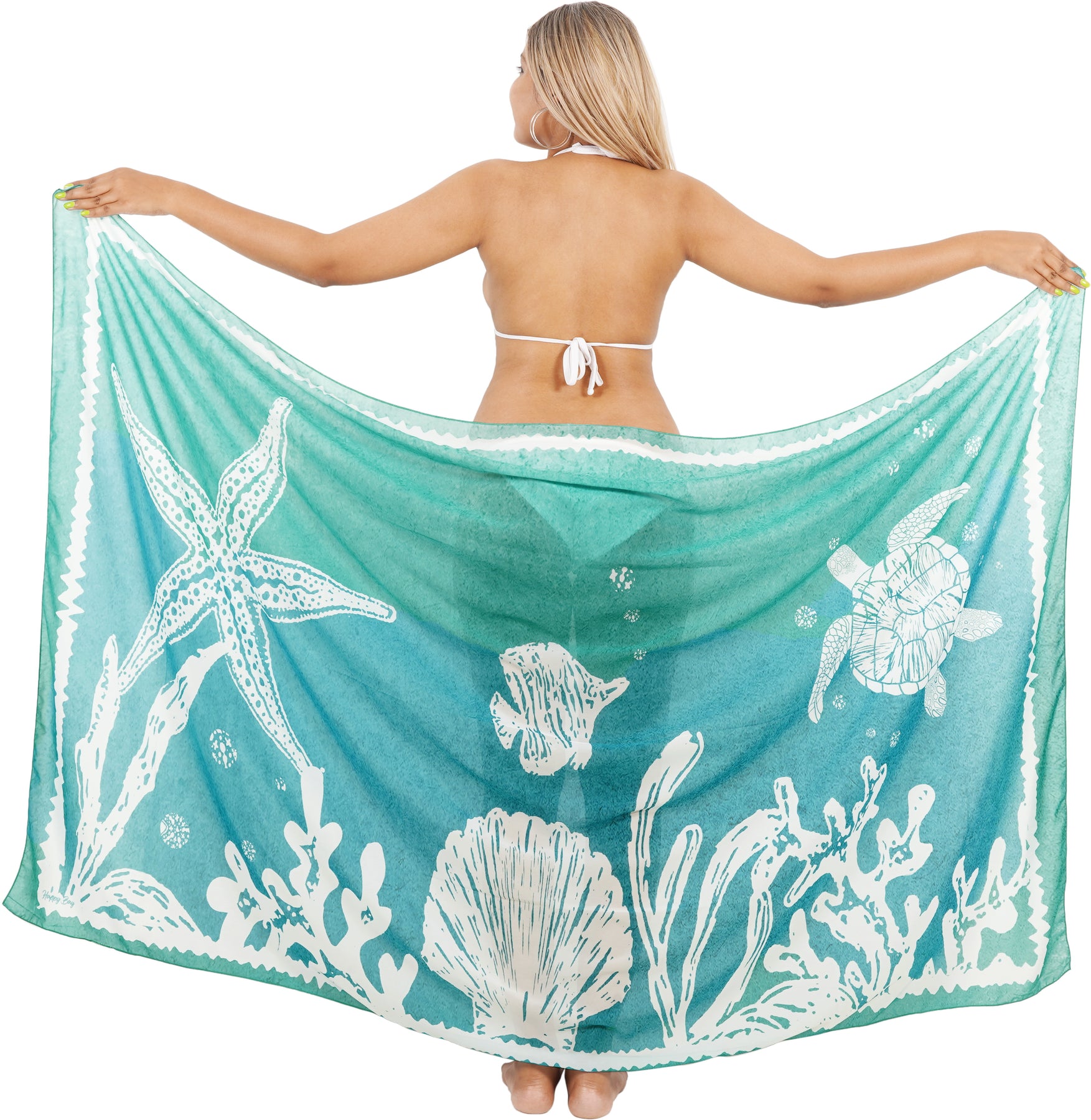 Dive into Aquatic Beauty Sea Green Sheer Underwater View Printed Beach Wrap For Women P07306