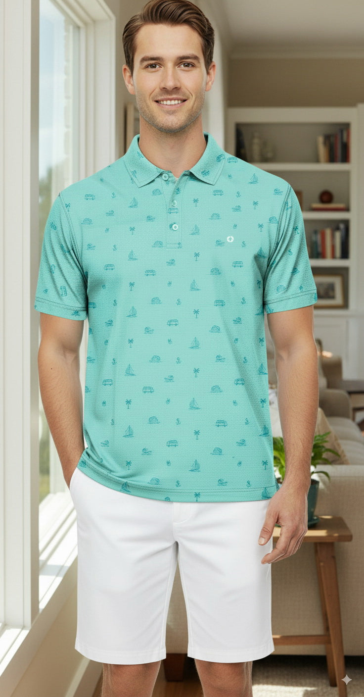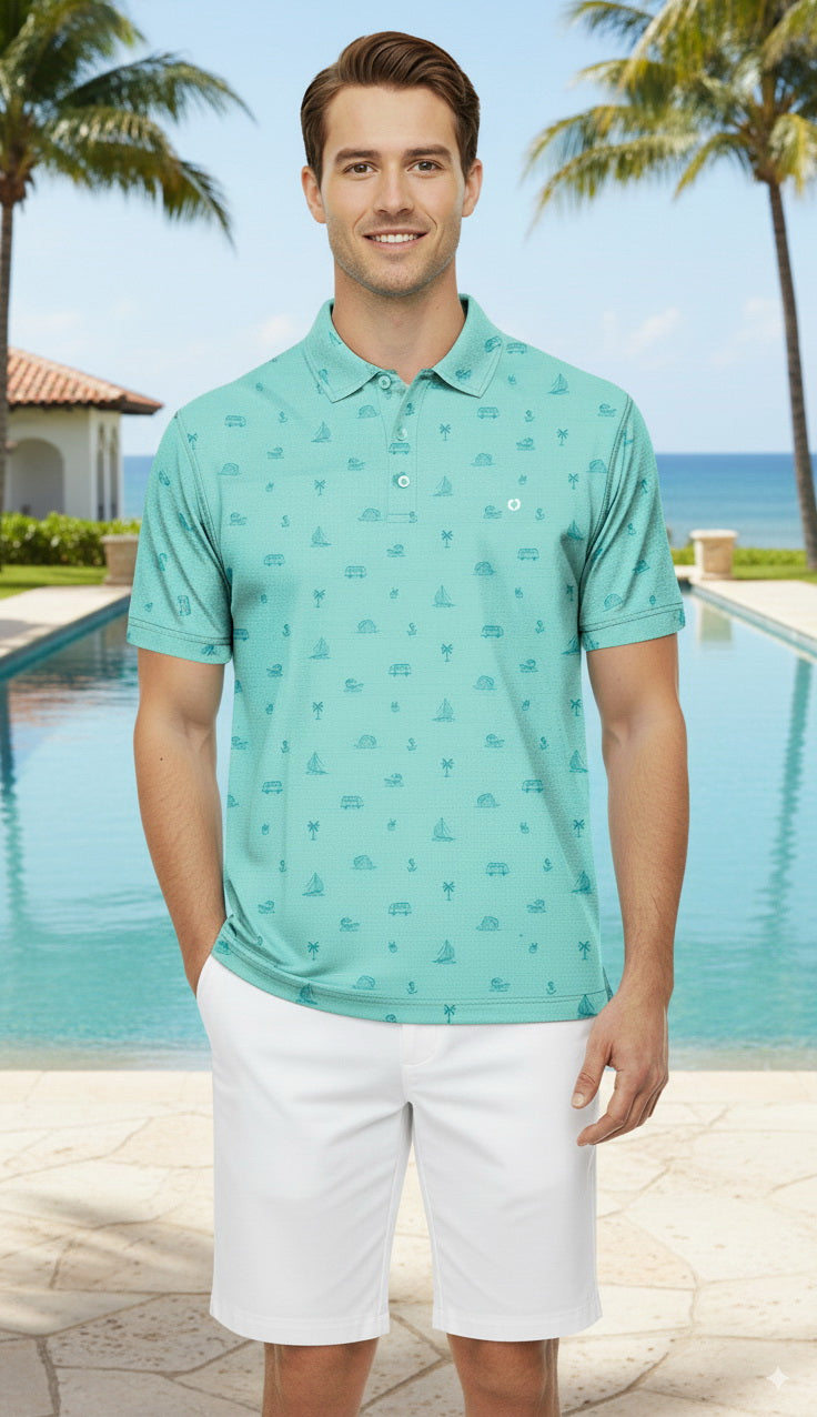 HAPPY BAY Beach Blue Mens Golf Polo Shirt P10350