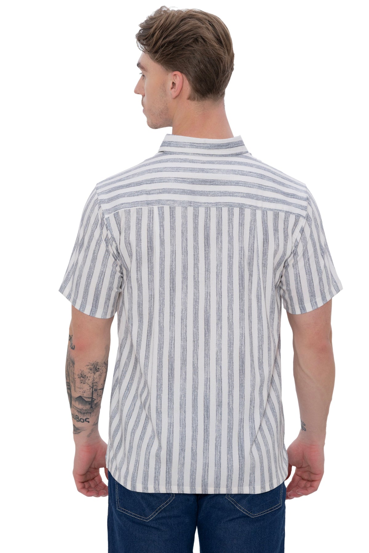 HAPPY BAY Mens Hawaiian Shirts Black Striped P07732