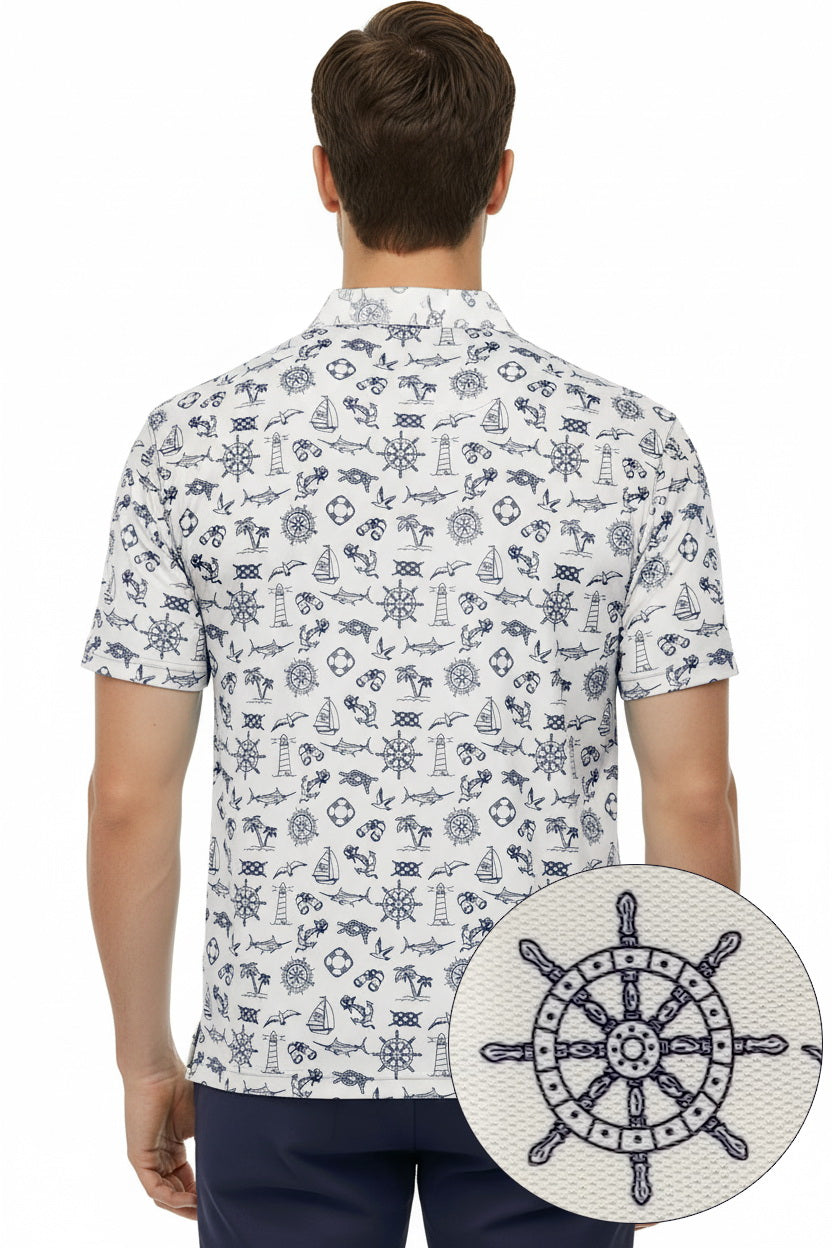 HAPPY BAY Fish White Mens Golf Polo Shirt P10344