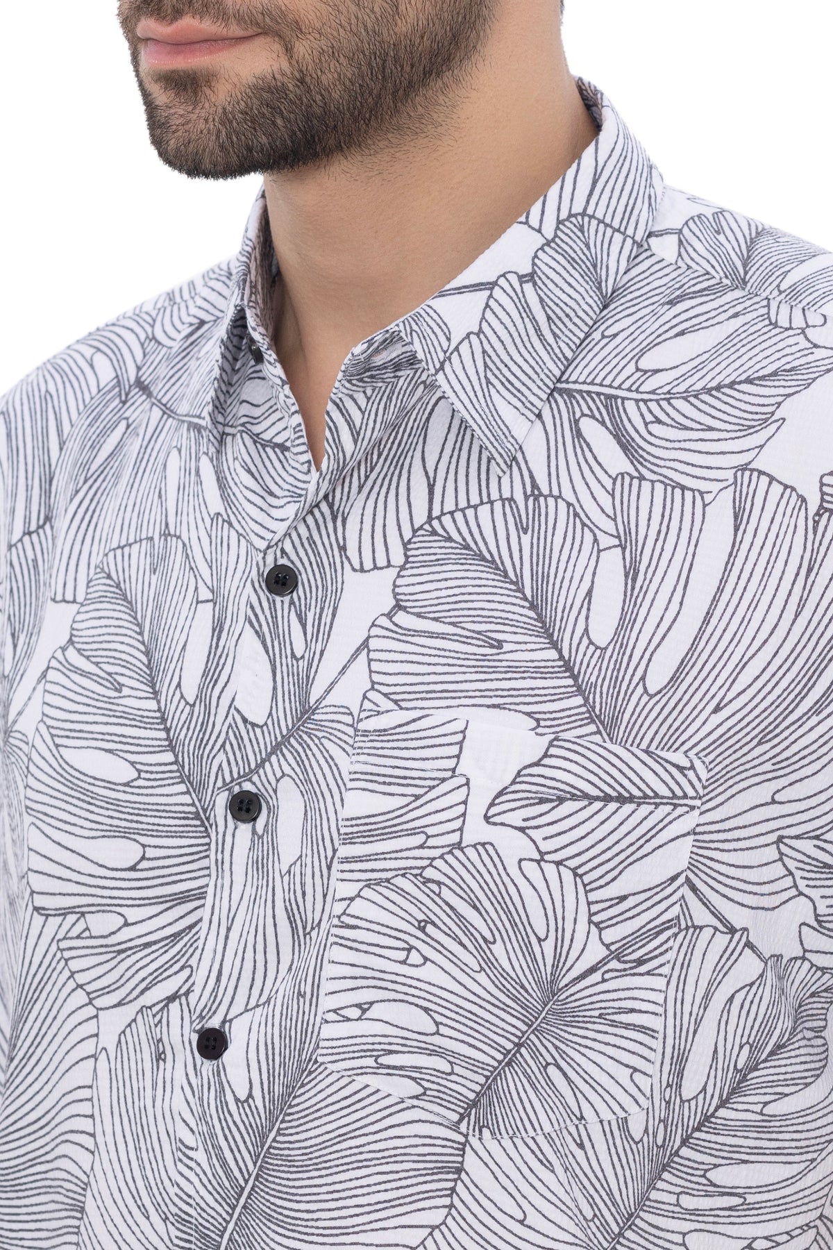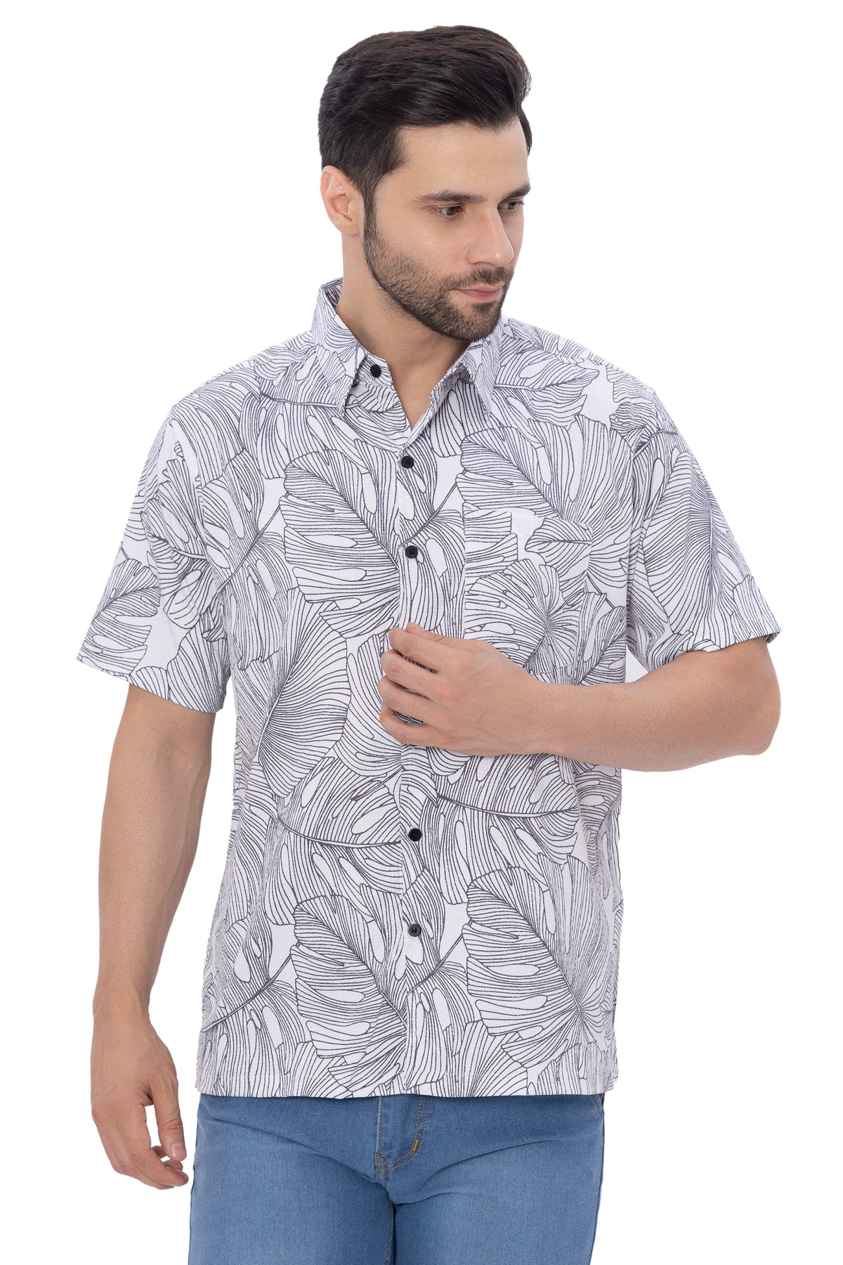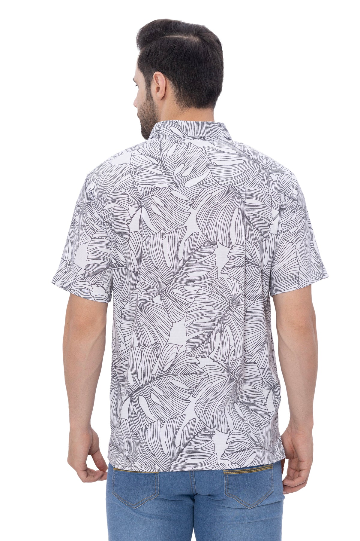 HAPPY BAY Mens Hawaiian Shirts Black Monstera Leaf P07734