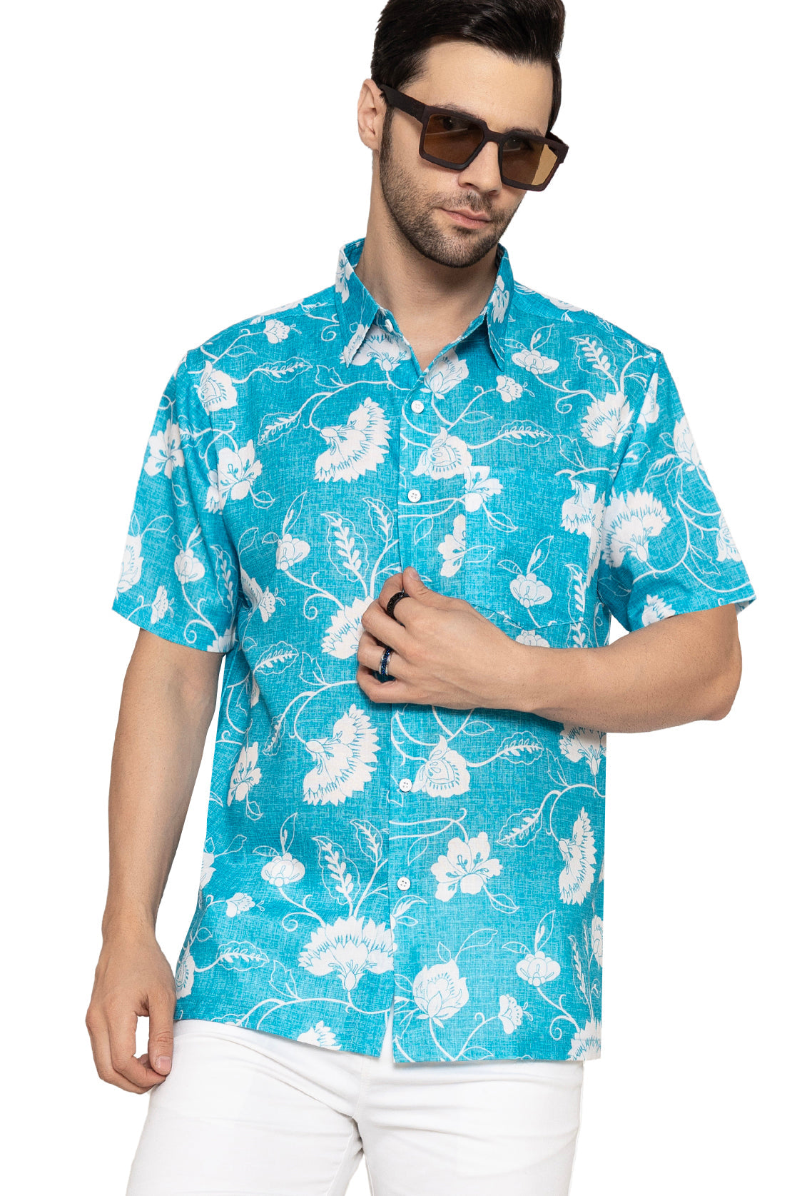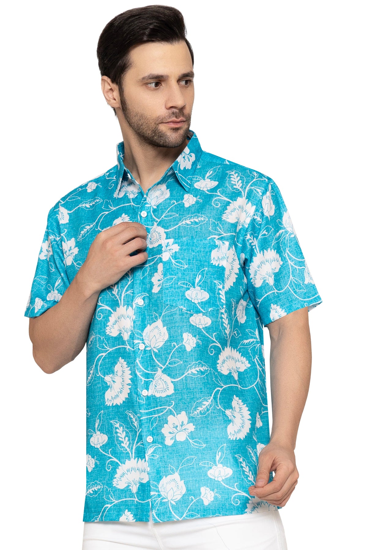 HAPPY BAY Mens Hawaiian Shirts Blue Floral Leaf P10173