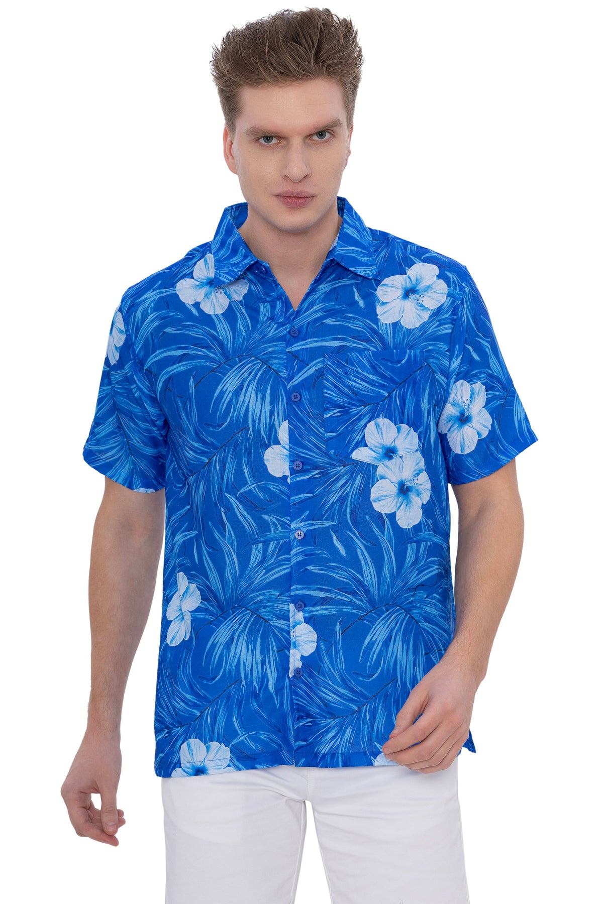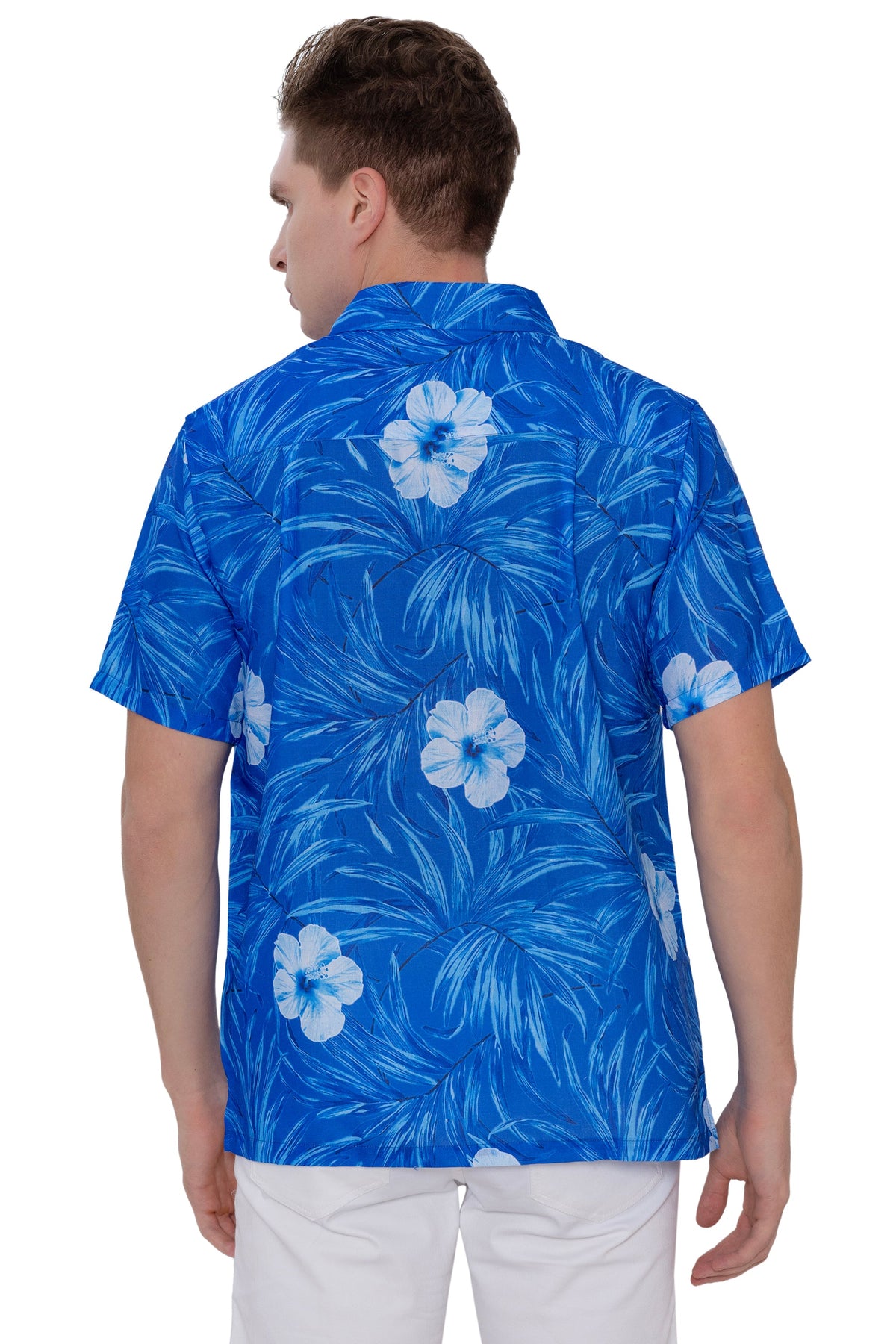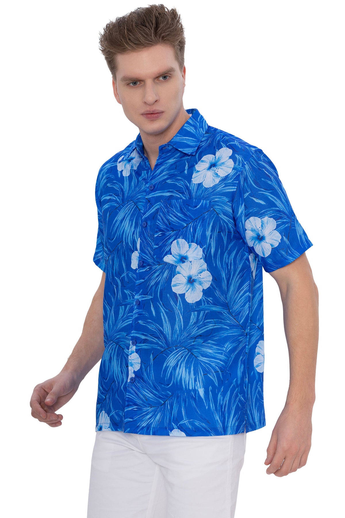 HAPPY BAY Mens Hawaiian Shirts Blue Floral Leafs P07221