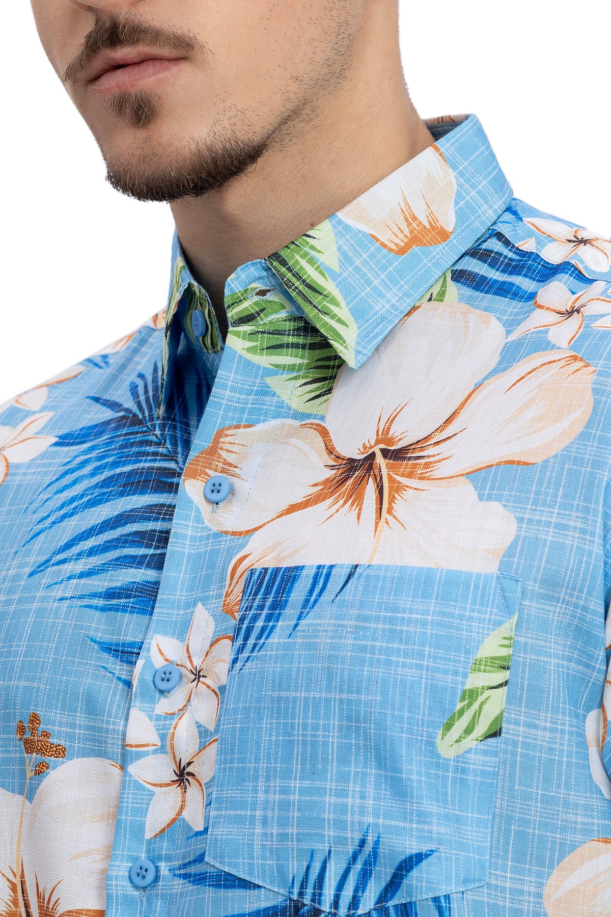 Fabric: Crafted from high-quality Linen Effect fabric, this shirt combines the comfort of casual wear with a touch of tropical charm.