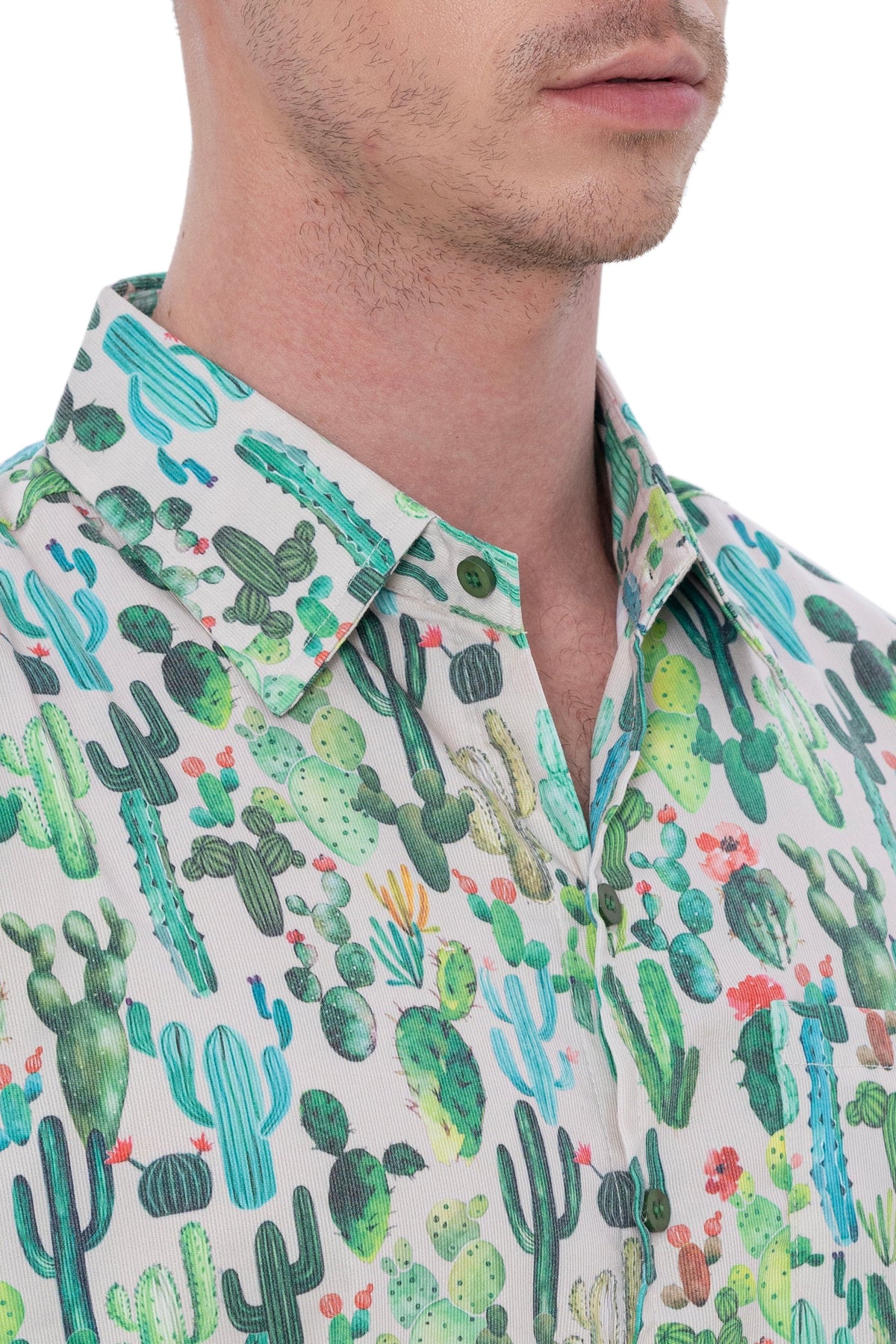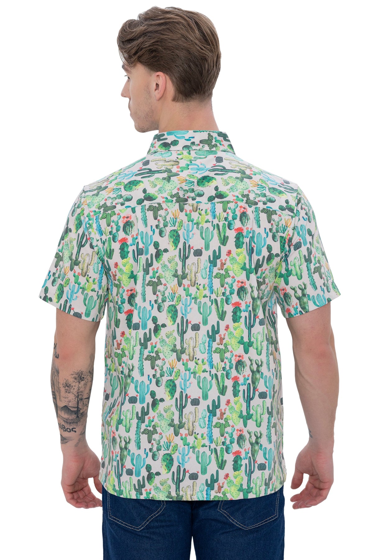 HAPPY BAY Mens Hawaiian Shirts Green Cactus P07619