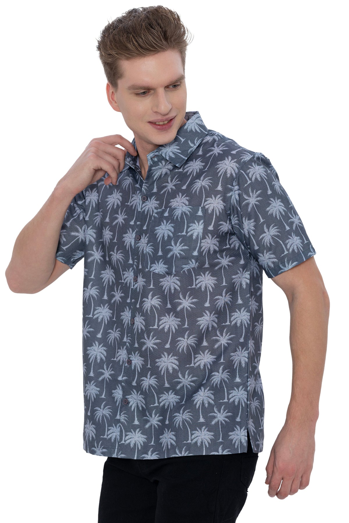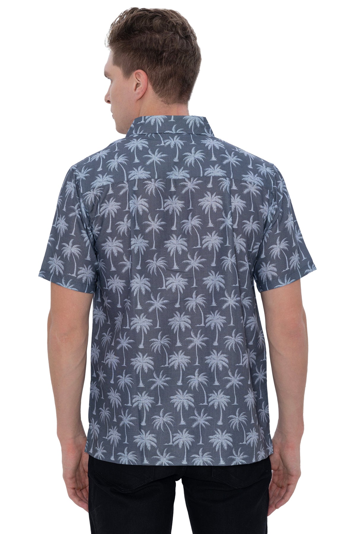 HAPPY BAY Mens Hawaiian Shirts Grey Allover Palm Tree P07608