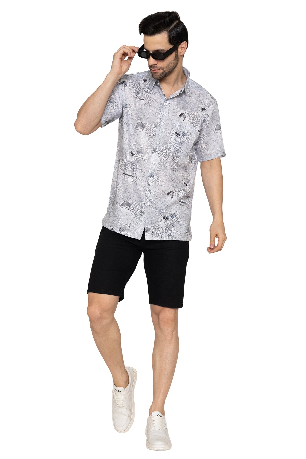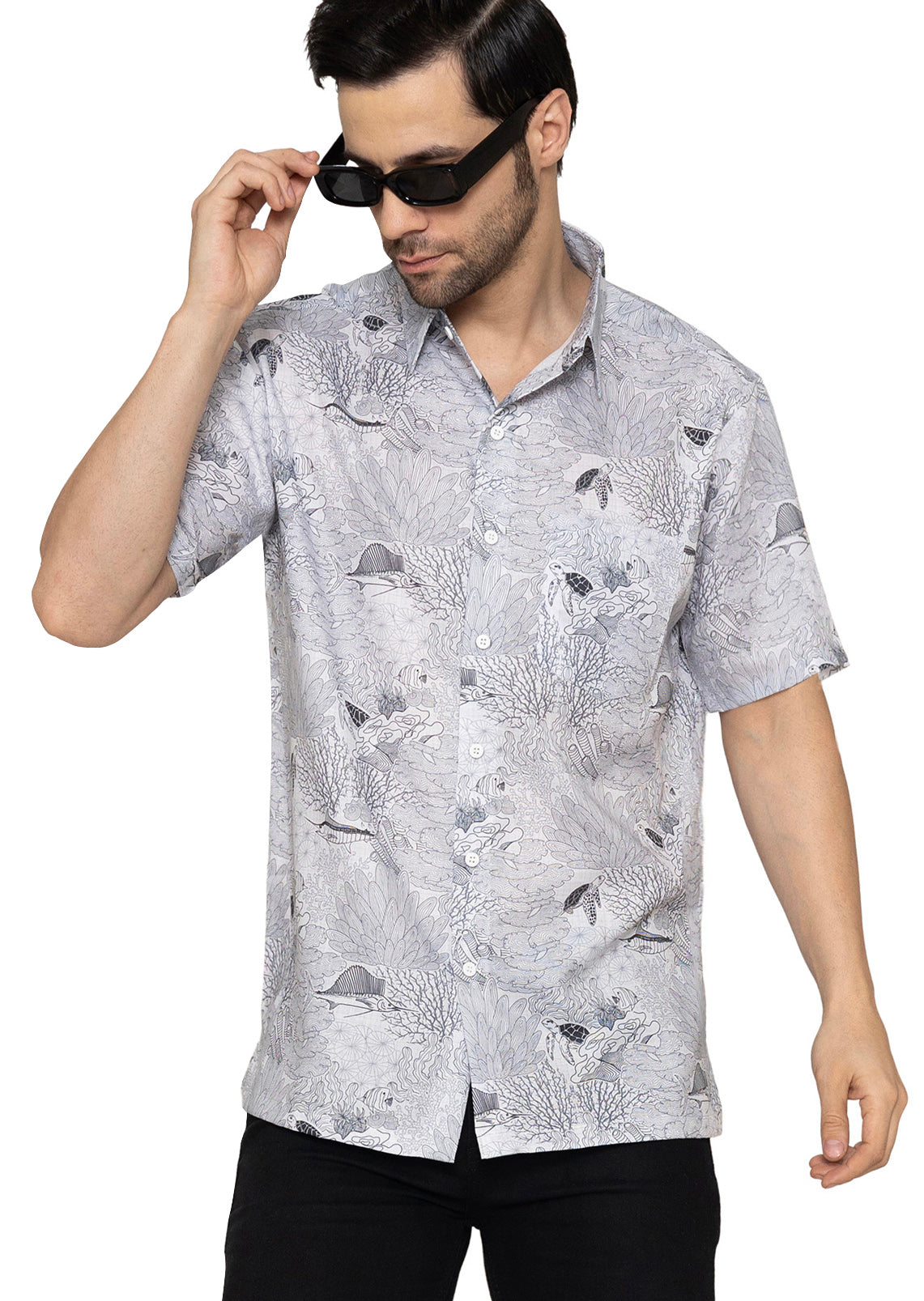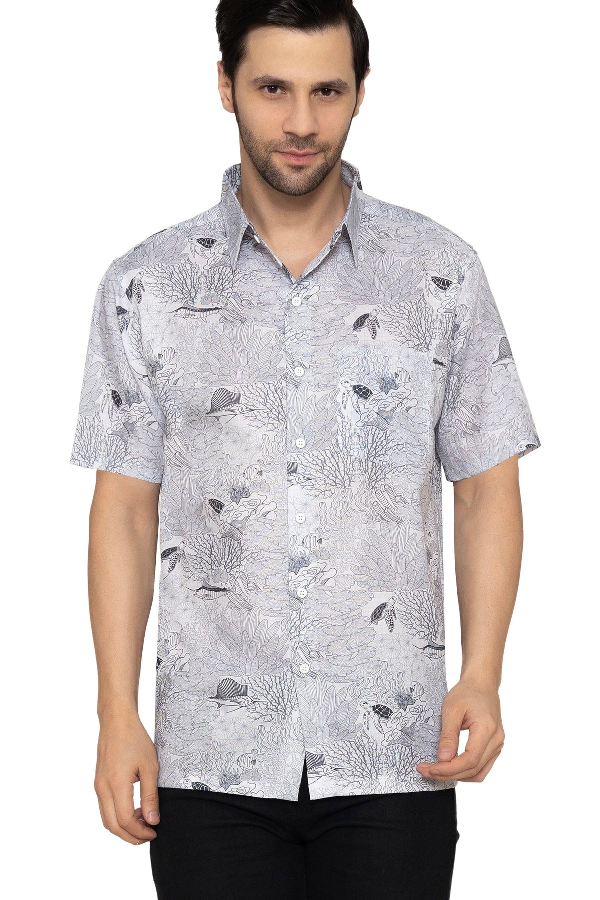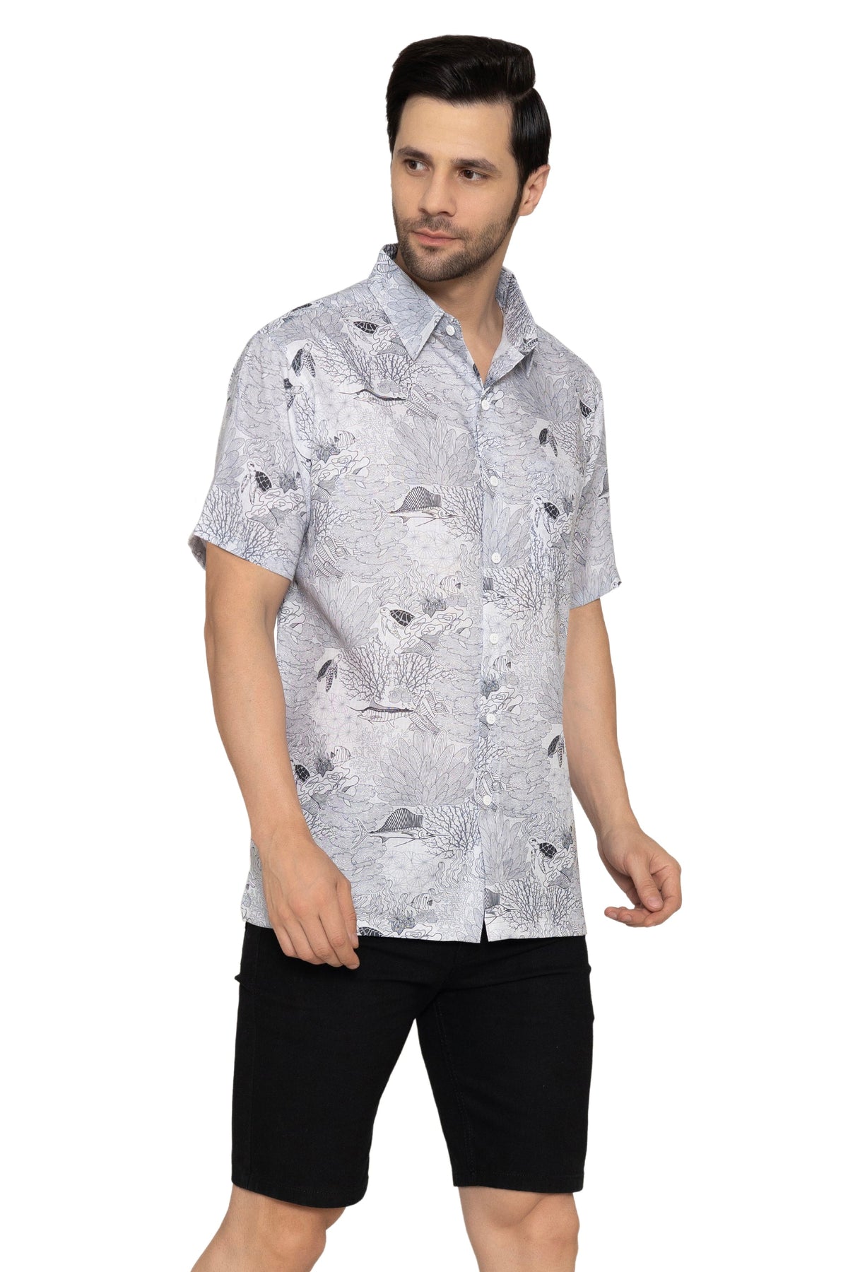 HAPPY BAY Mens Hawaiian Shirts Grey Fish P10178