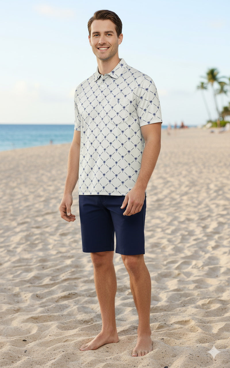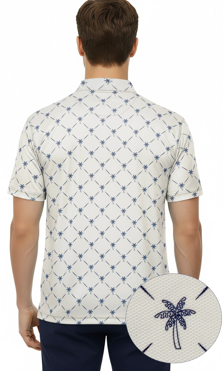 Step into the world of sophistication and comfort with our Men's Polo Tee Shirt featuring an exquisite design of allover Palm Tree against a regal Royal Blue backdrop. Crafted with precision and style in mind, this polo shirt is the epitome of modern fashion and versatility.