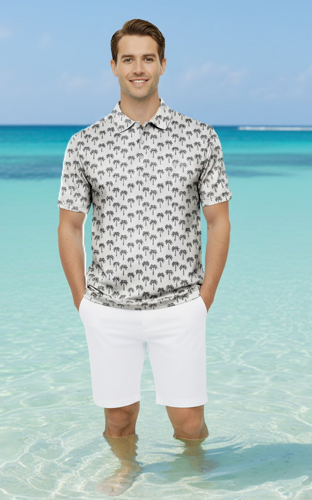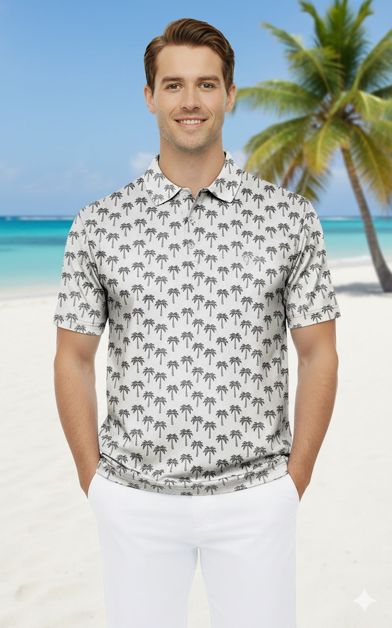 HAPPY BAY Palm Tree White Mens Golf Polo Shirt P10334