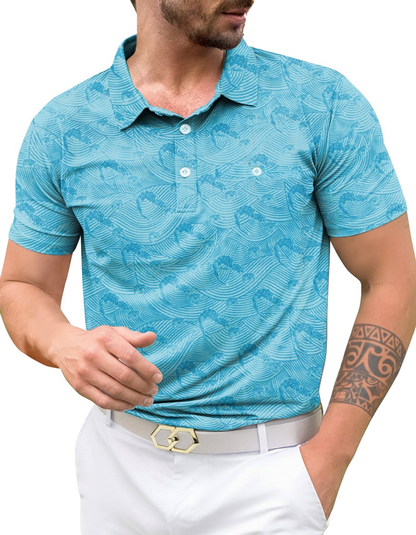 HAPPY BAY Waves Blue Mens Golf Polo Shirt P10341