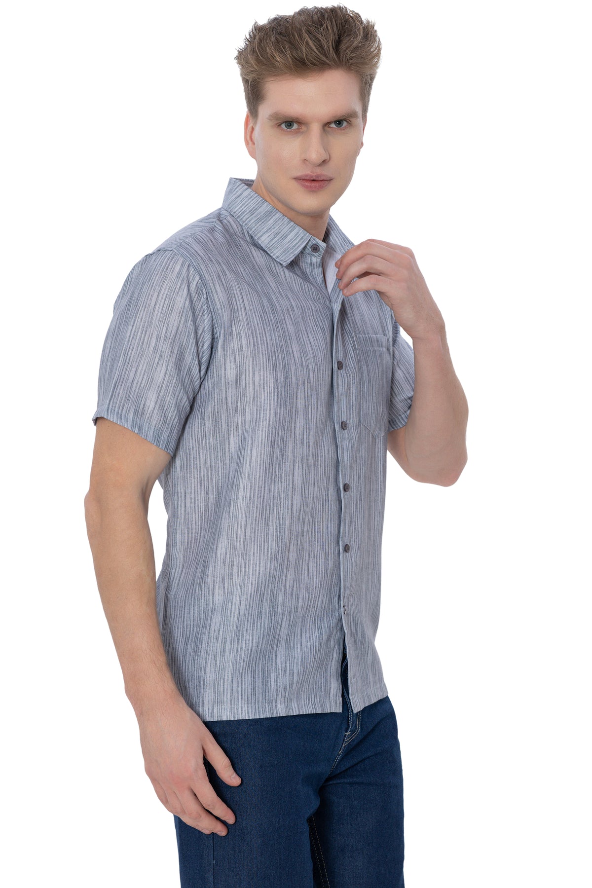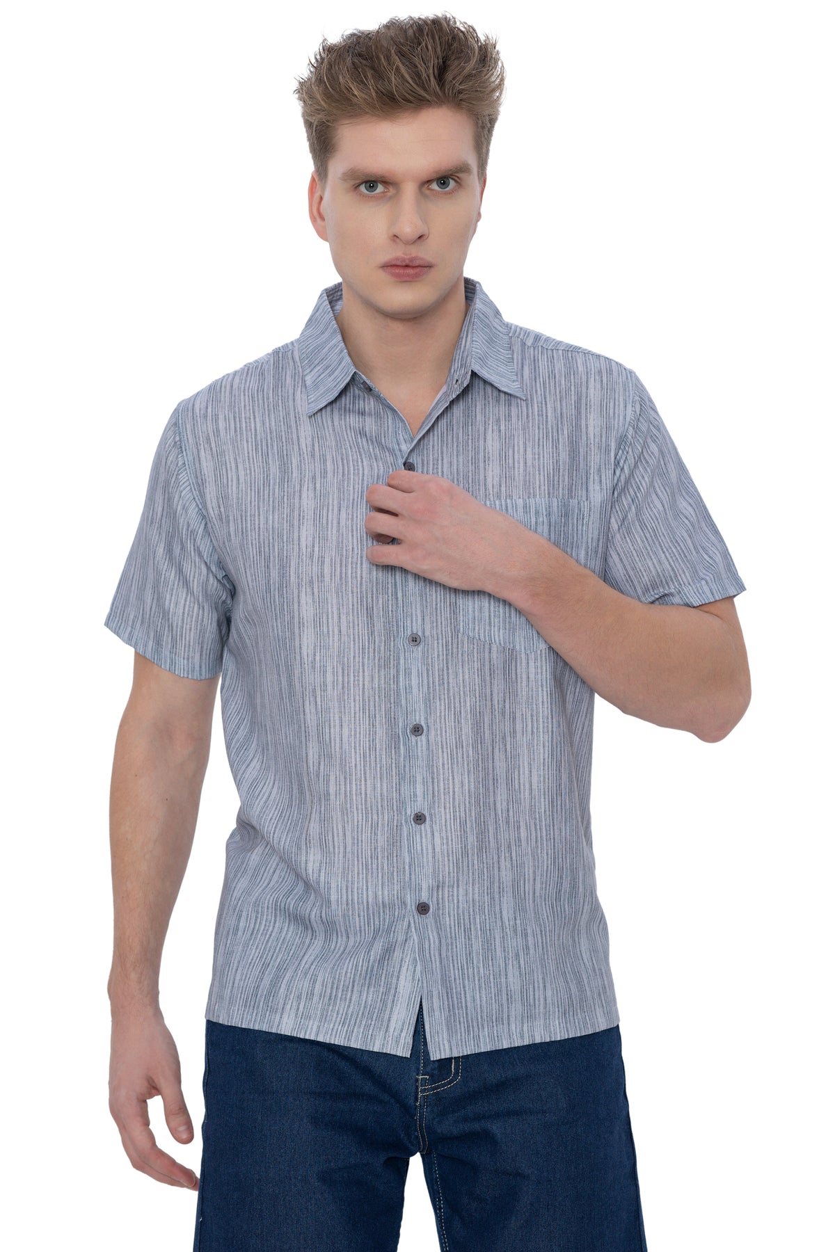 HAPPY BAY Mens Hawaiian Shirts Grey Stripes P07594