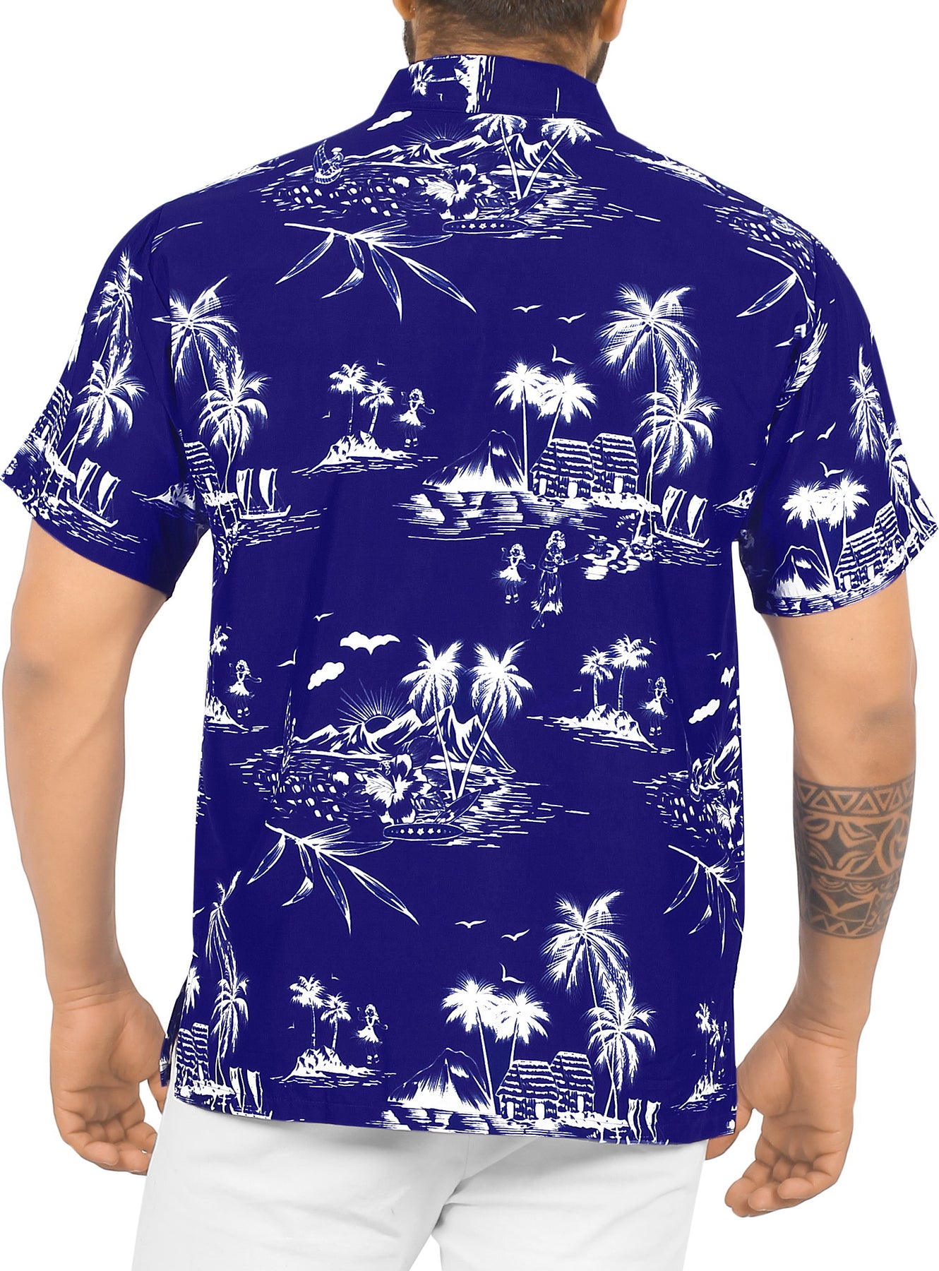 HAPPY BAY Men's Island View Aloha Beach Shirt,Indigo P00024