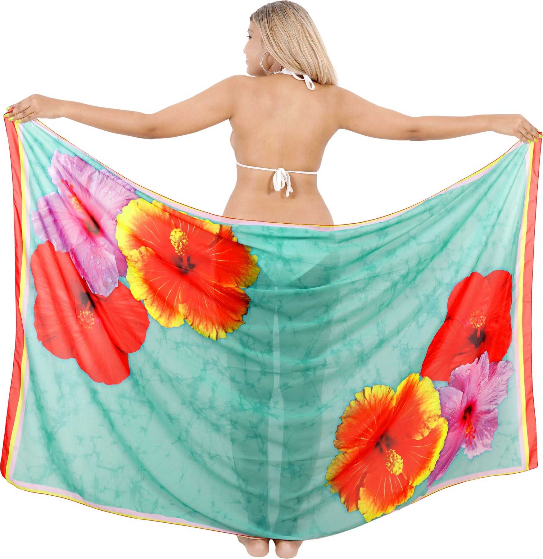 Tropical Elegance for Beachside Bliss Sheer Sea Green Hibiscus Flower Printed Beach Wrap For Women P06791
