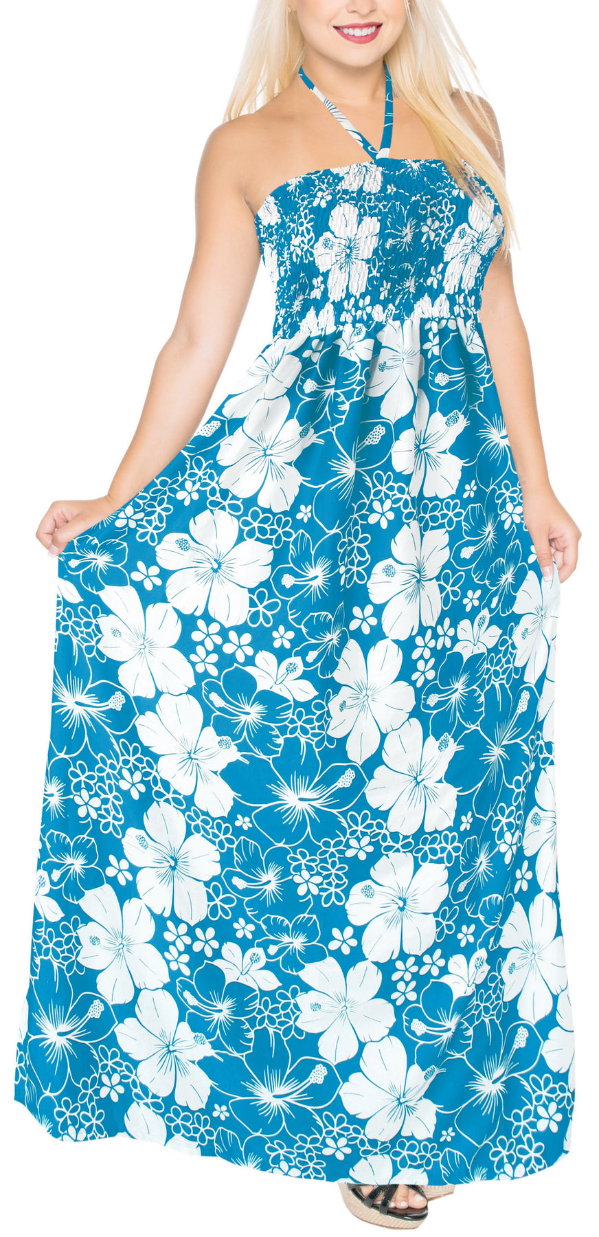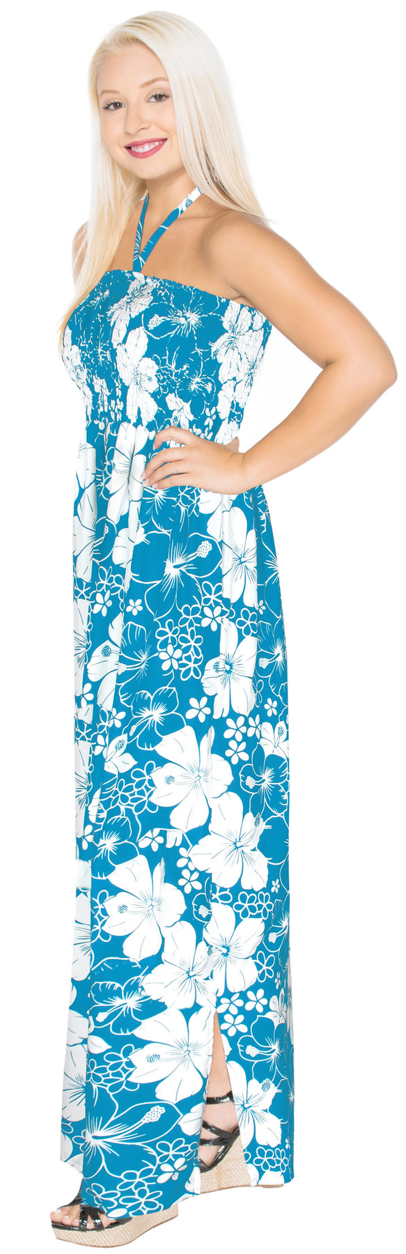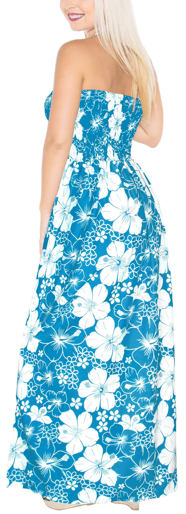 Women's Long Dress With Blue Hibiscus Floral Print P01165