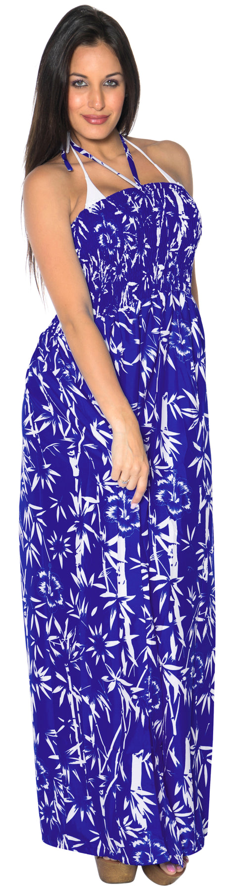 Women's Long Tube Dress With Bamboo & Floral Print P01181
