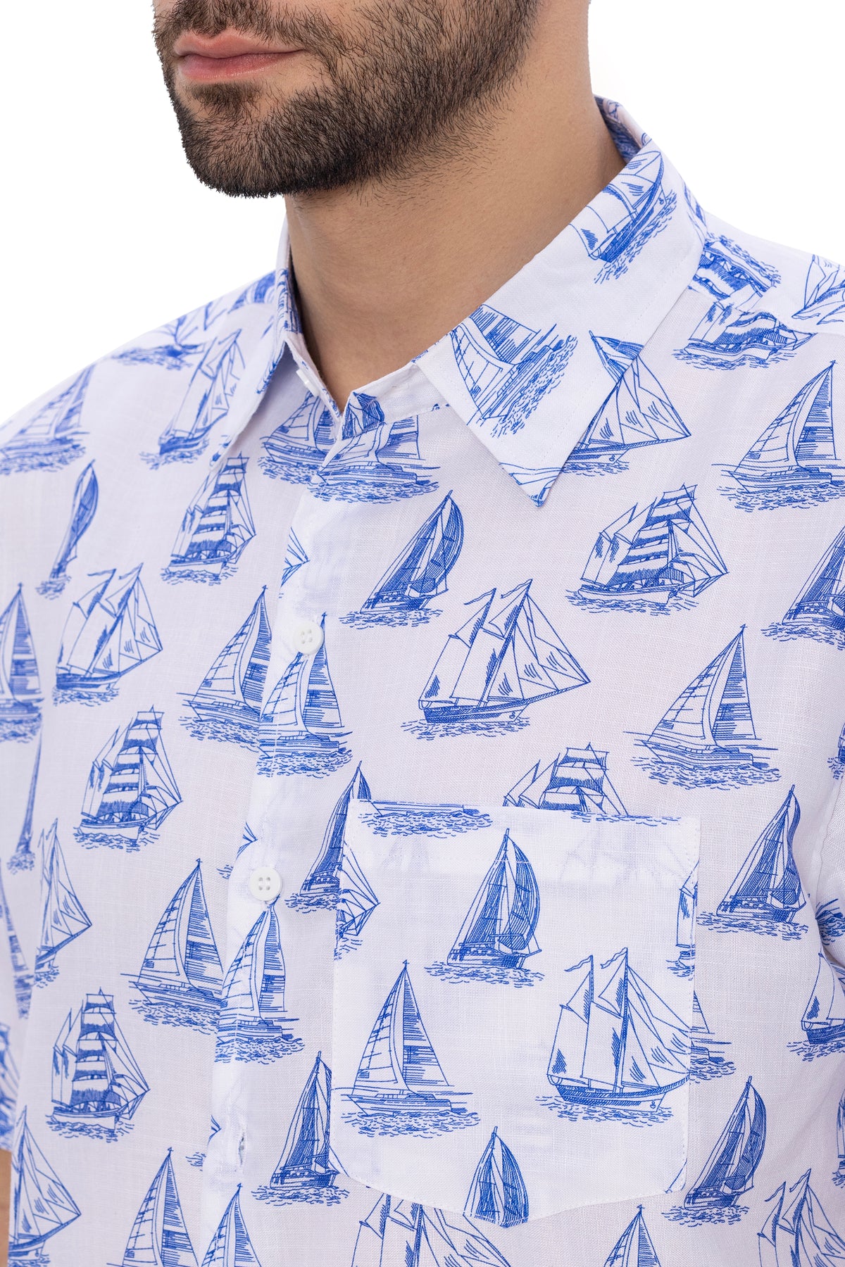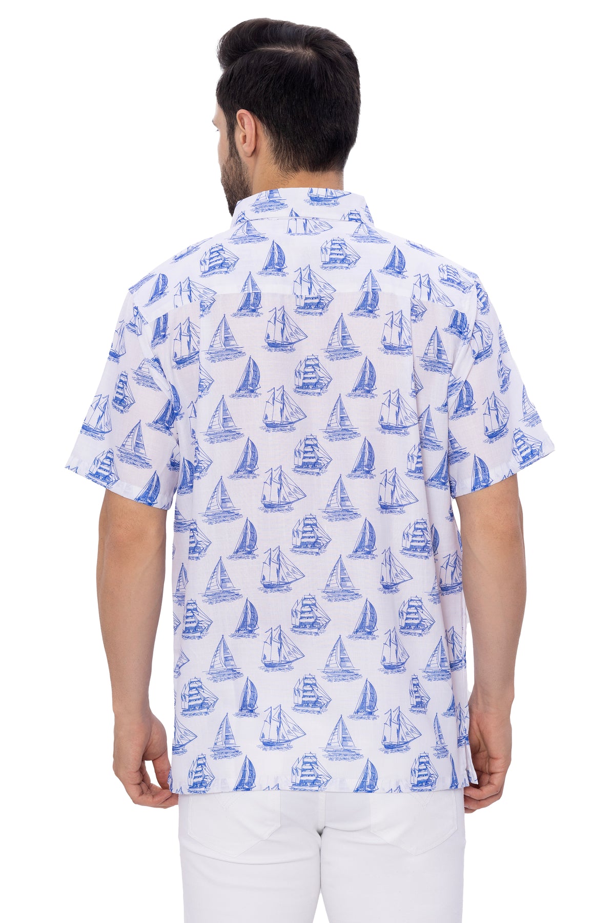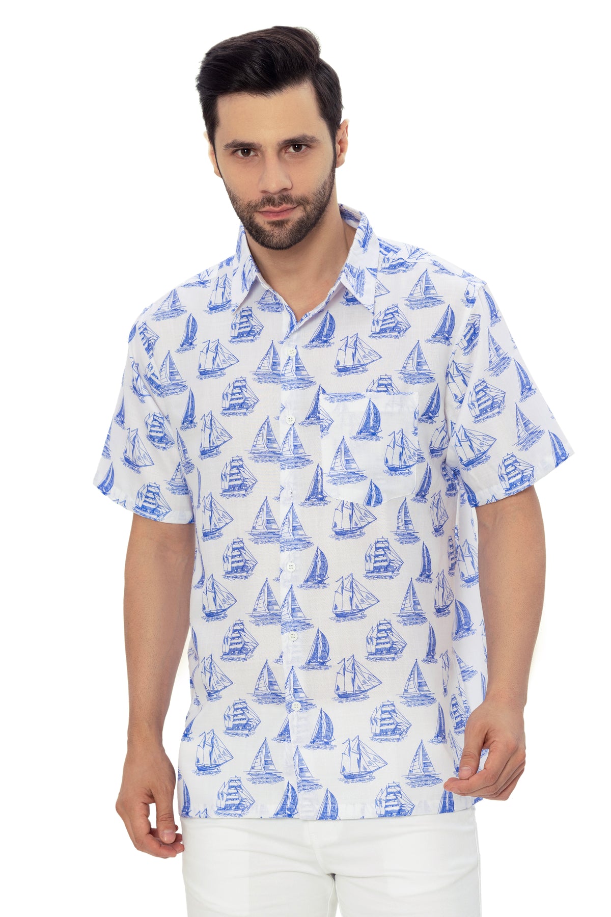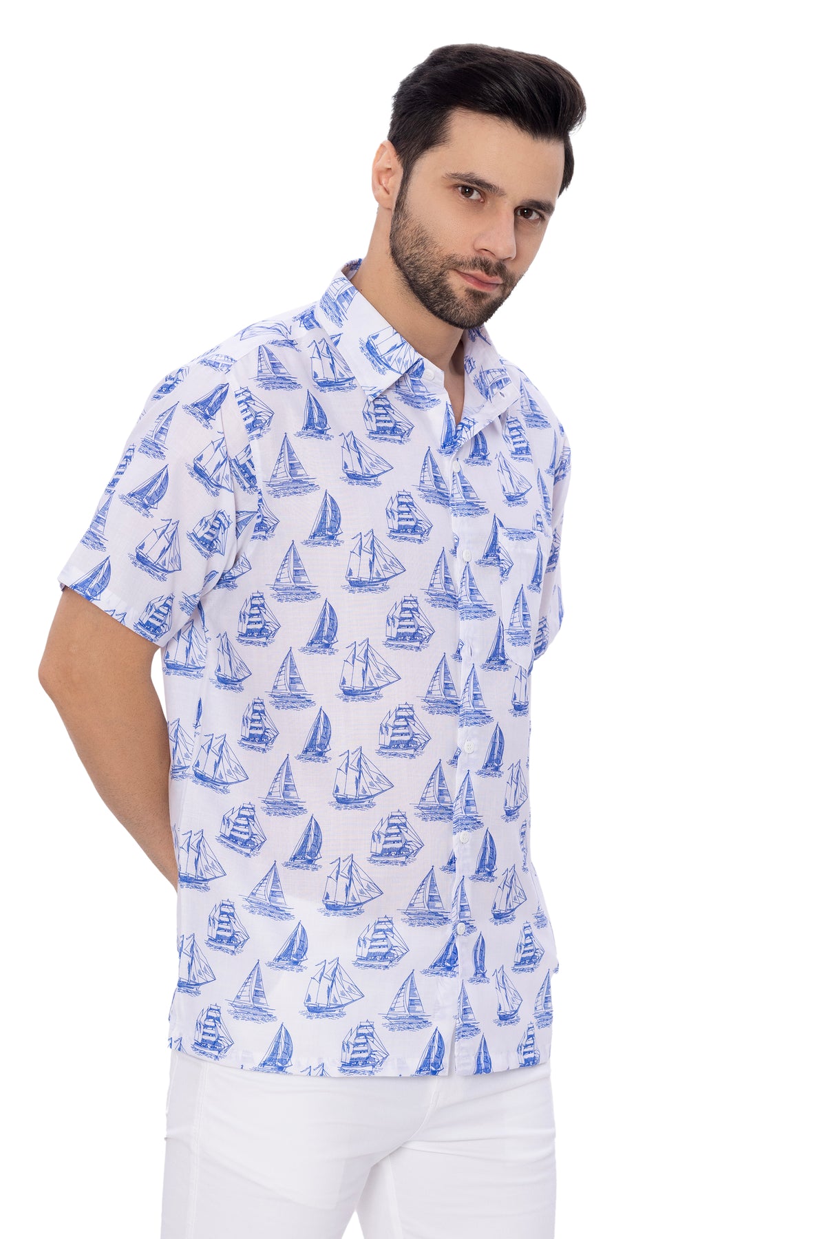 HAPPY BAY Mens Hawaiian Shirts White Boat P07606