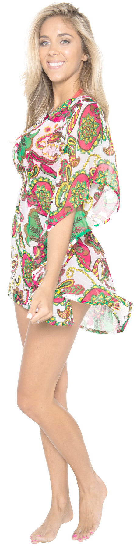 Welcome to HAPPY BAY This Soft Comfortable Paisley Beach Cover Up Is Popular Because Of Its Features, Strolling On The Beachside, In The Evening Over A Jeans, Pant Or Skirt. This Women'S Wear Can Be Worn As A Partywear Dress, Evening Dress, Relaxing Dress At Home, Summer Dress, Beach Dress And Also As Cover-Ups. Extremely Popular Among Women Of All Ages, Cultures And Sizes. Versatile Piece For Any Women's Wardrobe. Stay Classy And Elegant! ==> Clothing Type : Casual Beach Cover Up ==> Fabric: Sheer Lightweight Chiffon Fabric Good for Light Travel And See Through Material. US: 4 (S) - 10 (M) | Max Bust : 37 Inches [93 cms] | Length : 32 Inches [81 cms] FABRIC WASH CARE - REGULAR Machine Wash; NO SPECIAL CARE NEEDED; DOES NOT FADE | Enjoy your Holidays with LA LEELA Products,This Would be the Best Valentine Day Gifts for her, Gifts for him, Gifts for Girlfriend, Gifts for Mother, Gifts for Father, Gifts for Boyfriend, Gifts for Husband, Gifts for Wife, Gifts for Uncle, Gifts for Aunt, Gifts for Grandfather, Work From Home Clothes Women. ==> Short Bikini Cover up Kaftan Caftan, Ladies, Summer Gift, Boho, Beachwear, Loose boyfriend , short Kimono, Resort, Pool, Vacation Tropical, Aloha, Caribbean, Festival, Tunic One size Dresses, Evening, Loungewear, Nightgowns, Nightwear, Maxi, Top, Wear with Cardigans, Maternity Dress all, Used as Beach Plus-size Swimwear, Weddings, Church, Evening gatherings, Gifts for Her, special gifts for Mother, Gifts for Mom, Wife, girlfriend, Saint Paddy’s Day Irish Retro Fancy Costume Note:- ==> Due to the light and different computer monitors, the color maybe slight different as pictures. All products are stitched by hand by designers, please allow 1-2 cm ( half inch) measurement variation.Its fun to shop here!