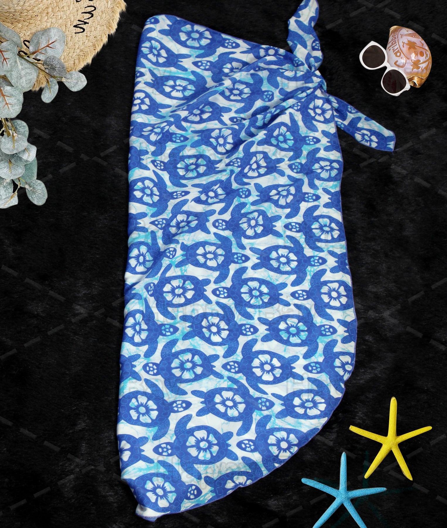 Blue Sheer Allover Turtle Print Beach Wrap For Women P06770