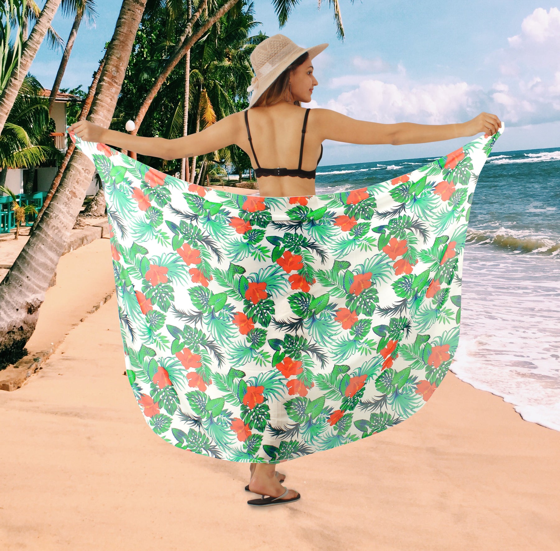 Multicolor Sheer hibiscus flower and leaves Print Beach Wrap For Women P06748